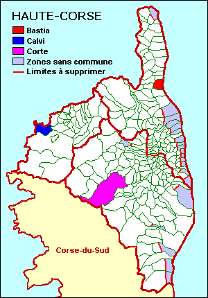 Lors de l'intégration du département de la Haute-Corse, le fond de carte utilisé possédait 21 limites de communes supplémentaires.